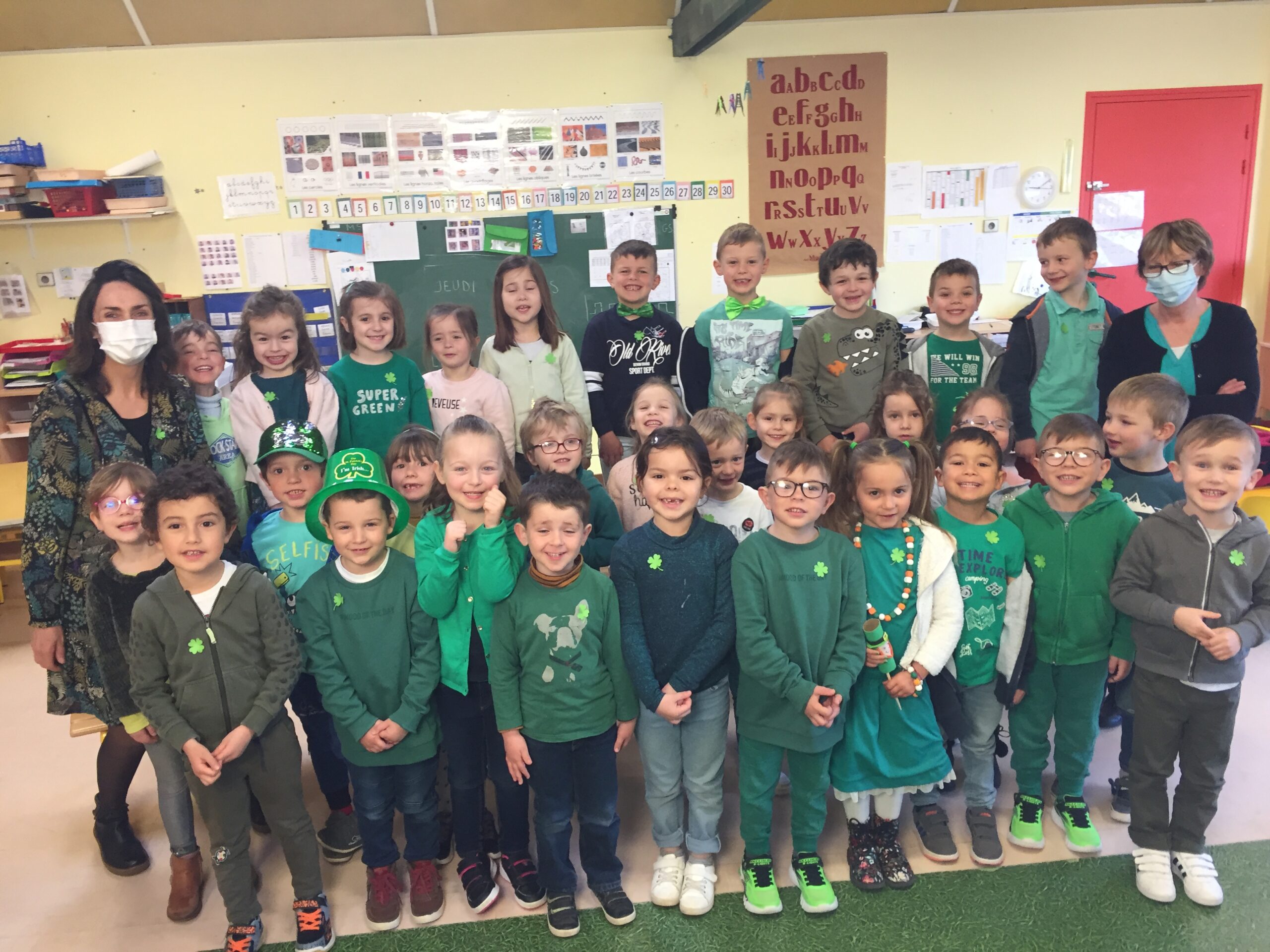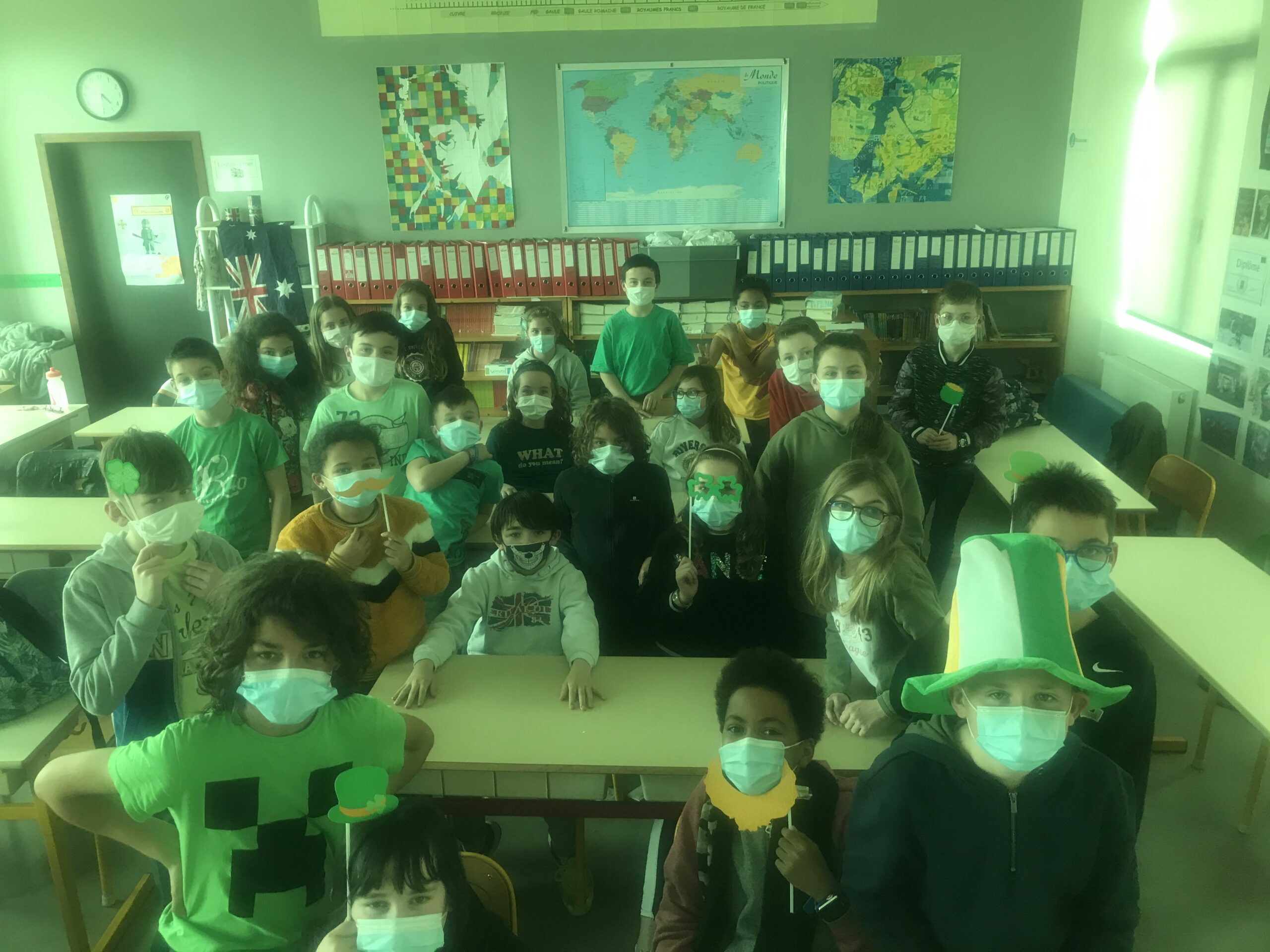 Pour marquer ce jour, nous avons participé au « global greening *» en mettant l’école et les élèves aux couleurs de l’Irlande le jeudi 18 mars !