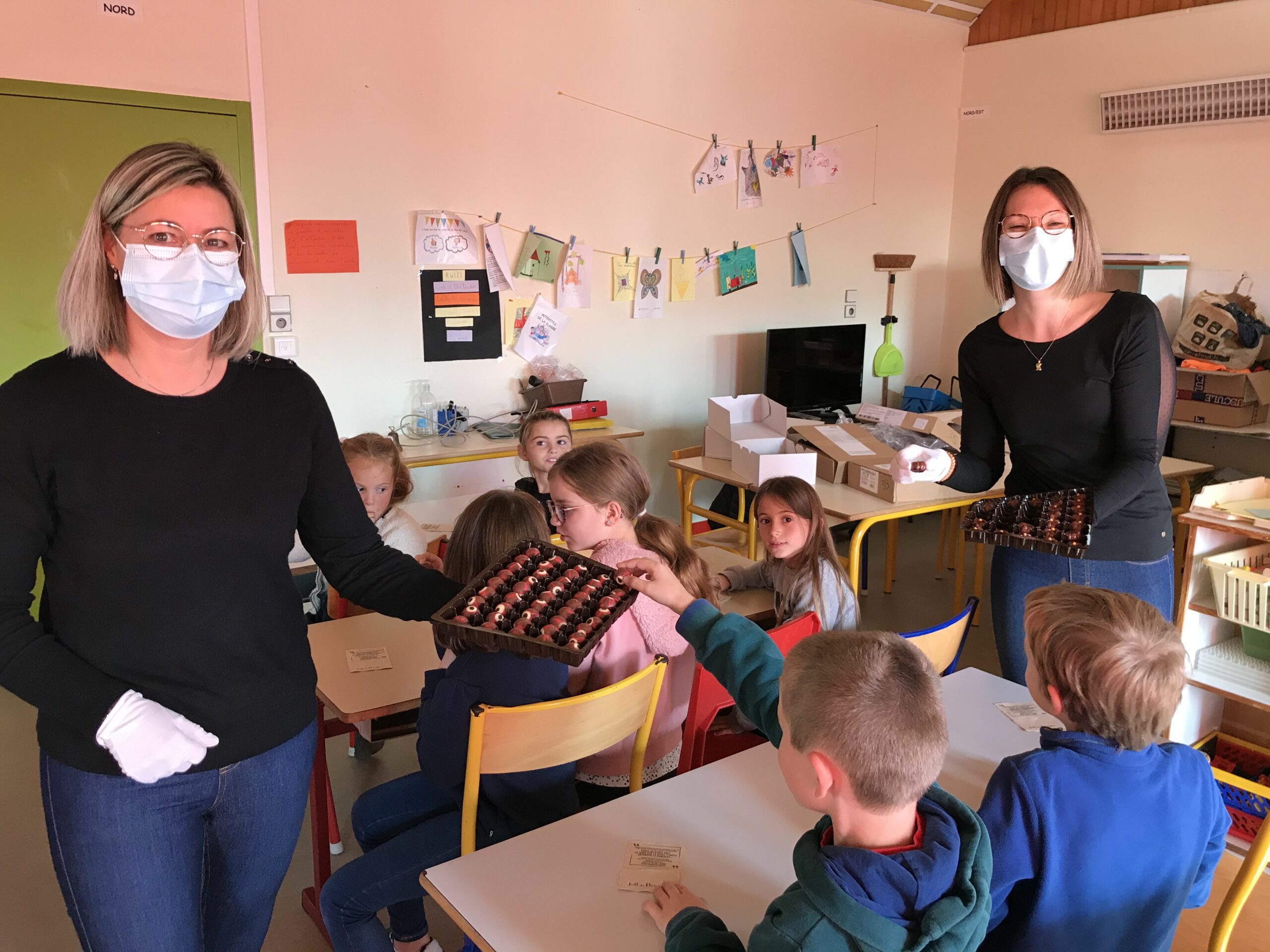 Vendredi 15 Octobre, afin de terminer en beauté une semaine du goût riche en saveur, tous les enfants de l’école ont pu participer à un atelier autour du chocolat par l’intermédiaire du magasin Jeff de Bruges.