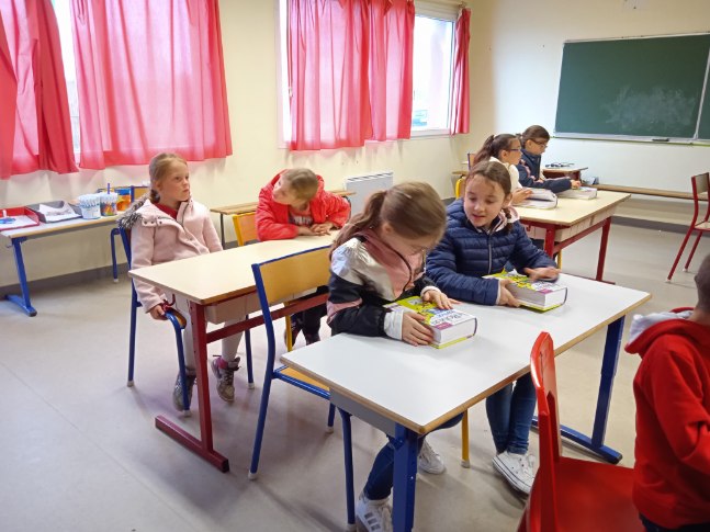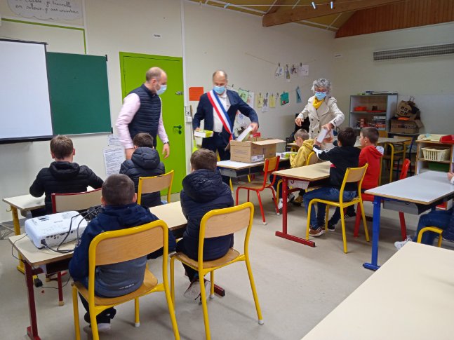 Remise des dictionnaires aux élèves de CE218 octobre 2021Ecrit par Anthony Lagadec Ce lundi 18 octobre, le maire de Plouvien et deux de ses adjoints sont venus à l’école remettre aux CE2 leur premier dictionnaire, outil indispensable à de nombreux apprentissages. Merci à la commune pour ce cadeau.