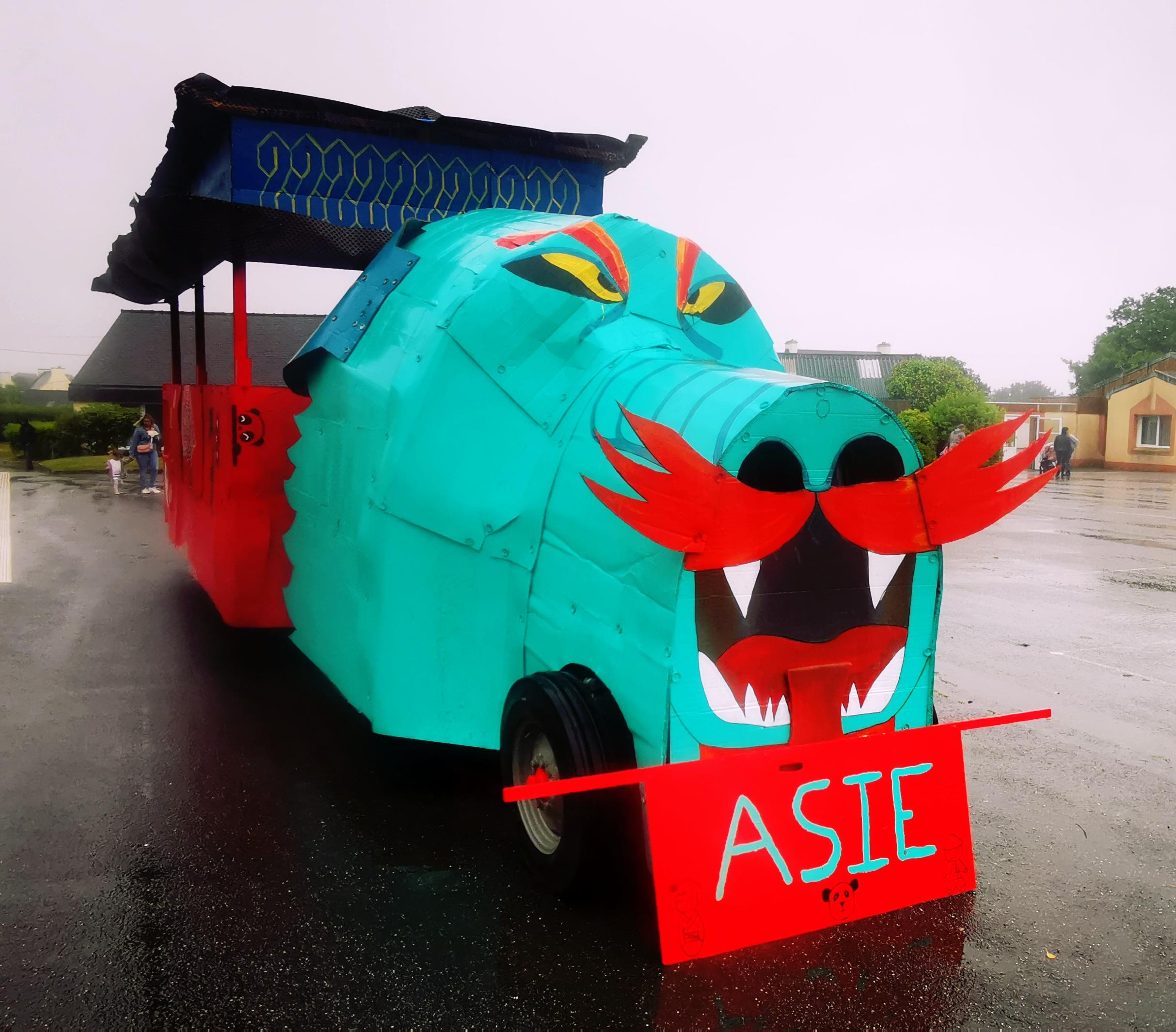 Après être restés au garage le jour de la kermesse, nous avons bien cru qu’ils ne sortiraient pas ce vendredi 24 juin… Mais les 3 chars ont finalement pu venir en exposition dans la cour de l’école pour la plus grande joie des enfants et des parents…
