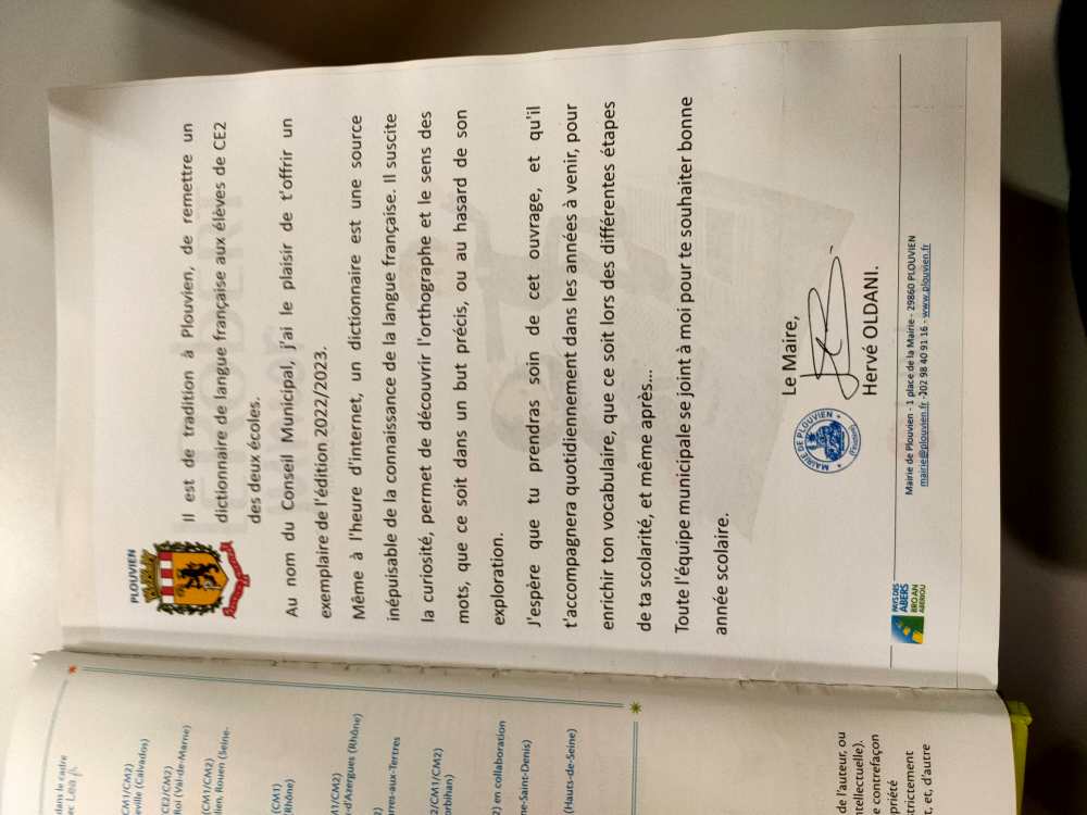 Depuis plusieurs années, la municipalité offre aux élèves de Plouvien cet outil de travail en classe de CE2. Nous la remercions pour cette démarche.
