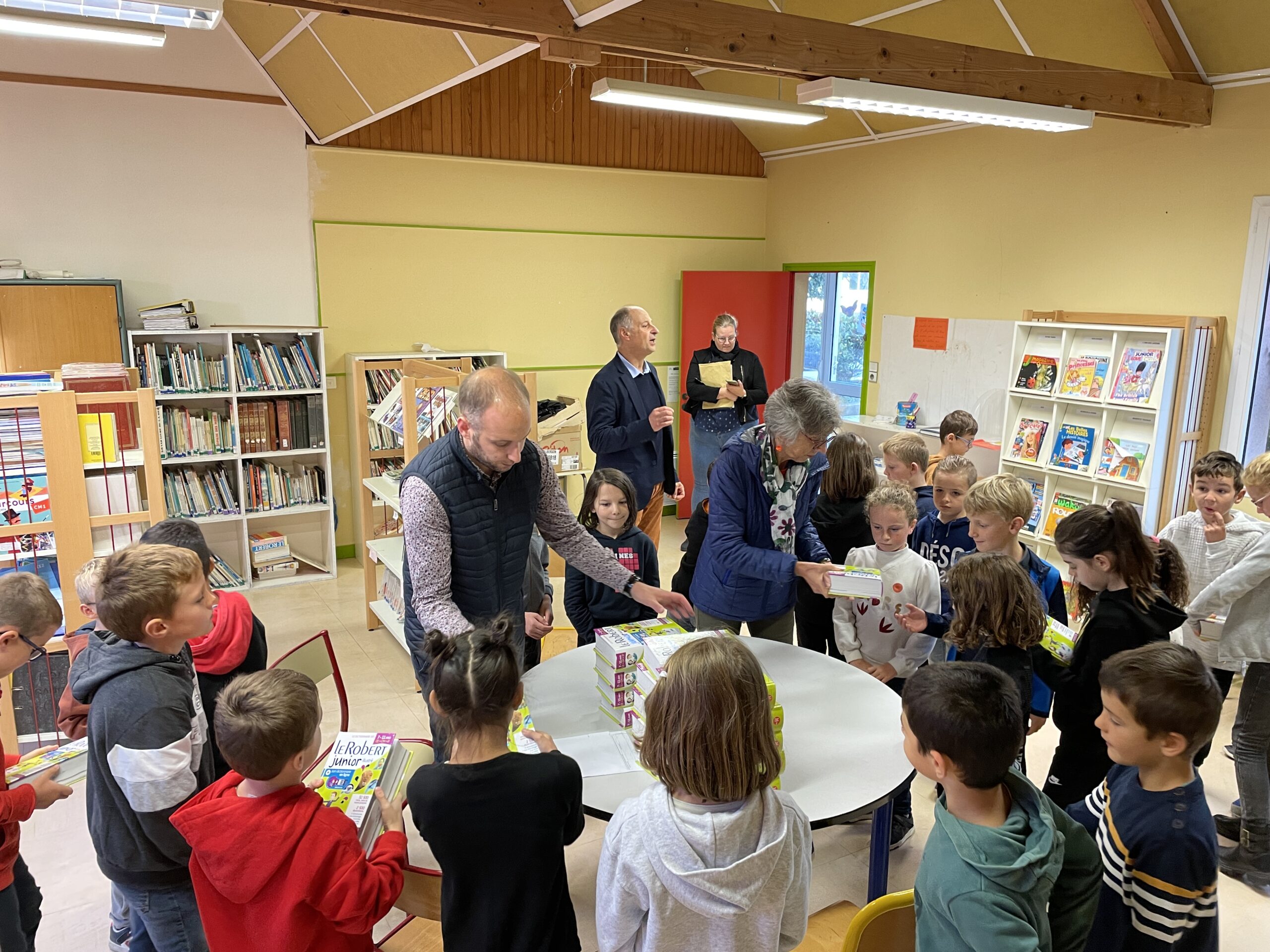 Ce lundi 17 octobre, les élèves de CE2 ont reçu la visite de Mr Hervé Oldani, maire de Plouvien accompagné par Denise Mercelle et Martial Congar pour la remise des dictionnaires.