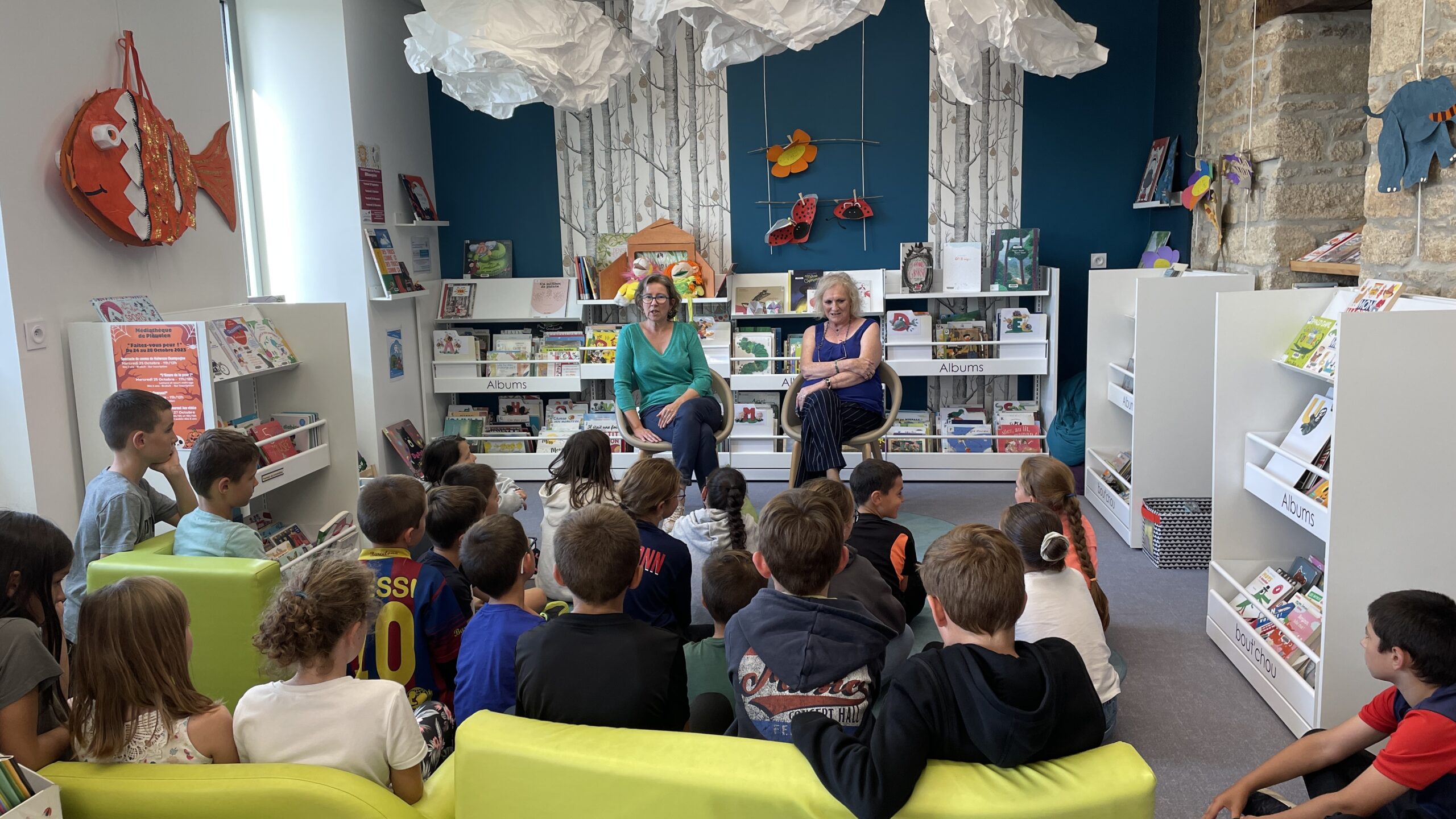 Première visite à la médiathèque3 octobre 2023Ecrit par Anthony Lagadec Mardi 3 octobre : accueil des élèves de CM1CM2B à la médiathèque par Sylvie et Christine. Au programme : 1 rappel des règles, 1 lecture et 1 emprunt de livres…